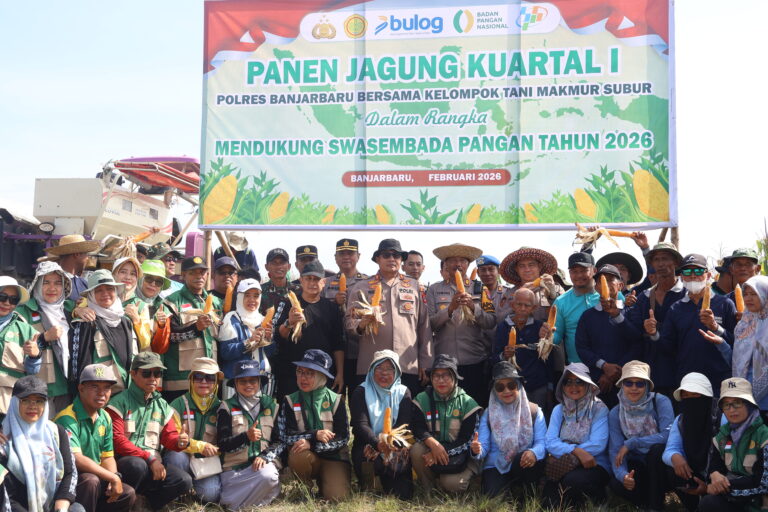Banjarbaru – Kapolsek Liang Anggang, Heru Setiawan, S.H, M.H melaksanakan kegiatan penanaman jagung pakan...