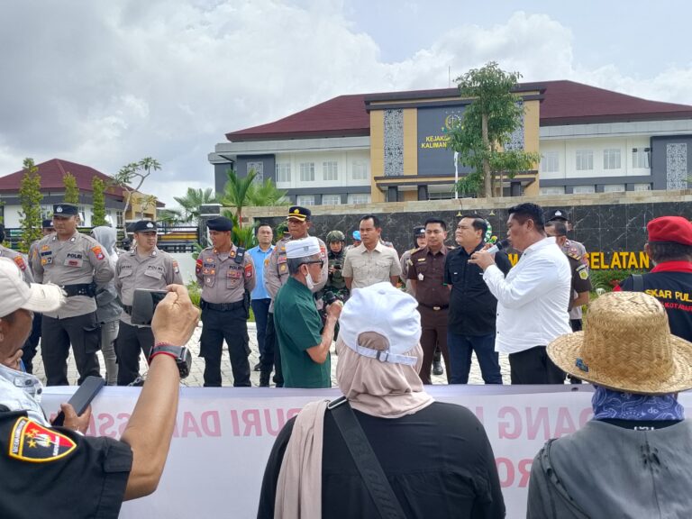 Banjarbaru – Personel Polres Banjarbaru melaksanakan pelayanan dan pengamanan aksi unjuk rasa...