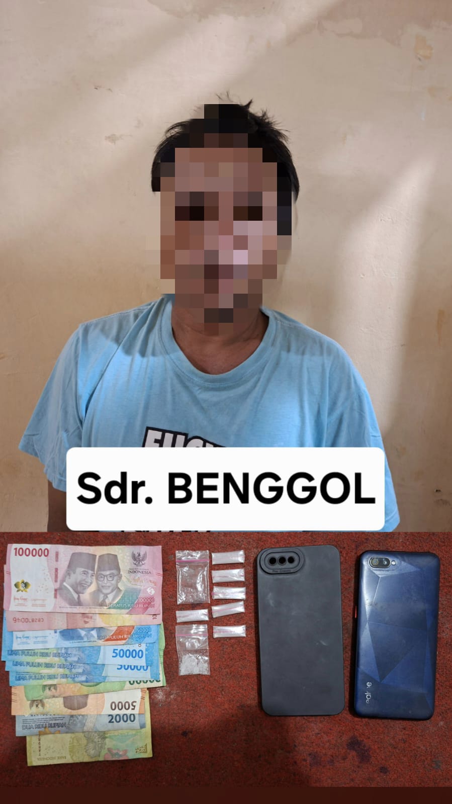 Dalam penangkapan tersebut, polisi mengamankan barang bukti berupa enam paket sabu dengan berat bersih 1,12 gram, satu unit handphone, serta uang tunai yang diduga hasil transaksi.