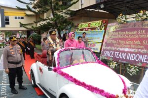 BANJARBARU – Usai pelaksanaan penyambutan Kapolres Banjarbaru AKBP Pius X Febry Aceng Loda, S.I.K., M.H yang didampingi Ny. Ira Pius dengan pedang pora di depan Mako Polres Banjarbaru pada hari Rabu tanggal 15 Januari 2024 sekitar pukul 08.00 wita.