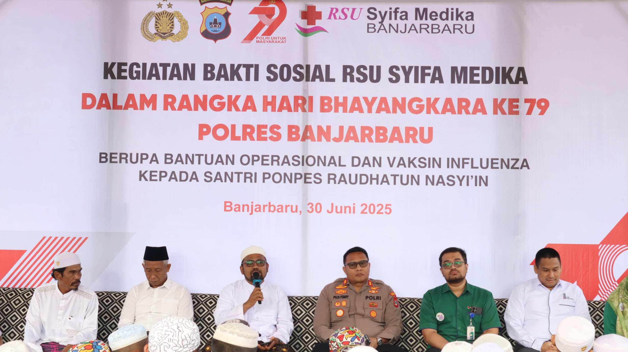 BANJARBARU – Polres Banjarbaru gelar bakti sosial bersama, Senin (30/6). Menggandeng RSU Syifa Medika, bakti sosial ini menyasar santri Pondok Pesantren Raudhatun Nasyii,in Banjarbaru.