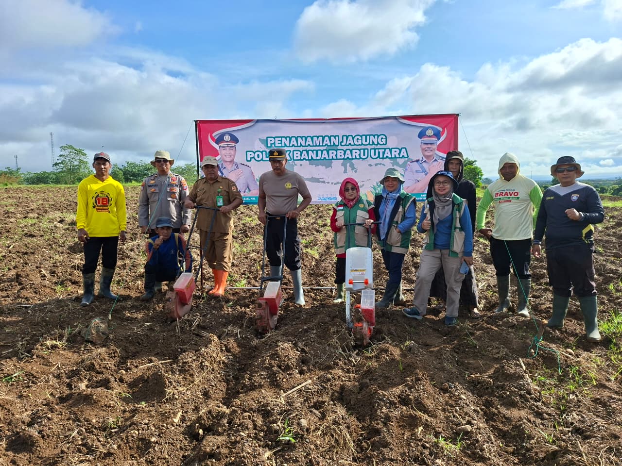 Kapolsek Banjarbaru Utara Akp Yuwono beserta personel turun langsung ke lapangan bersama para petani untuk melakukan penanaman jagung pipil. Kegiatan ini tidak hanya menjadi bentuk sinergitas antara Polri dan masyarakat, tetapi juga sebagai upaya nyata dalam mendorong produktivitas sektor pertanian di wilayah tersebut.
