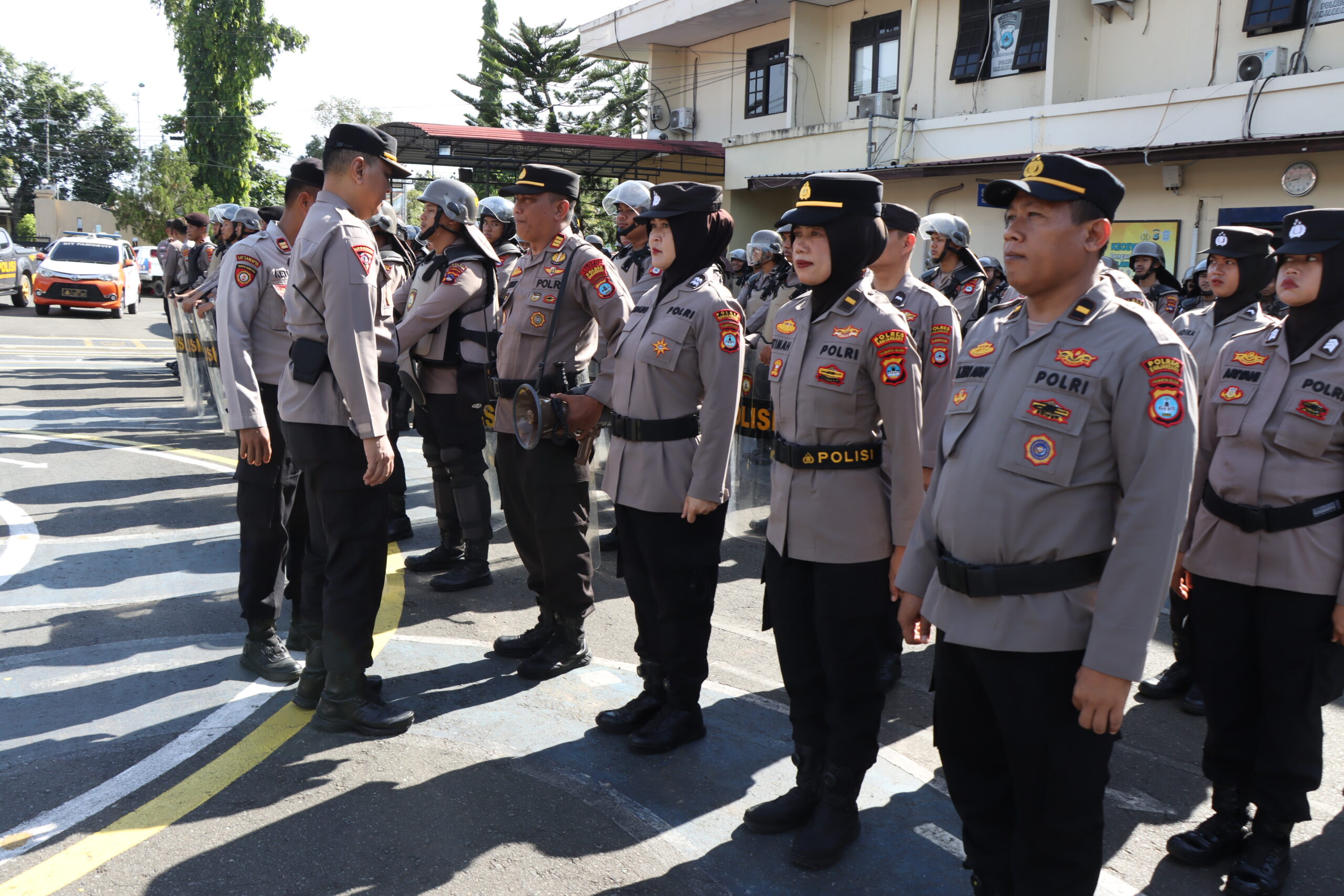 Banjarbaru – Kabag Ops Polres Banjarbaru Kompol Agus Sugianto memberikan arahan kepada personel Dalmas (Pengendalian Massa) yang dirangkaikan dengan pengecekan kelengkapan peralatan Dalmas, sebagai bentuk kesiapan dalam menghadapi berbagai potensi gangguan kamtibmas di wilayah hukum Polres Banjarbaru. Jumat (10/04/2026)