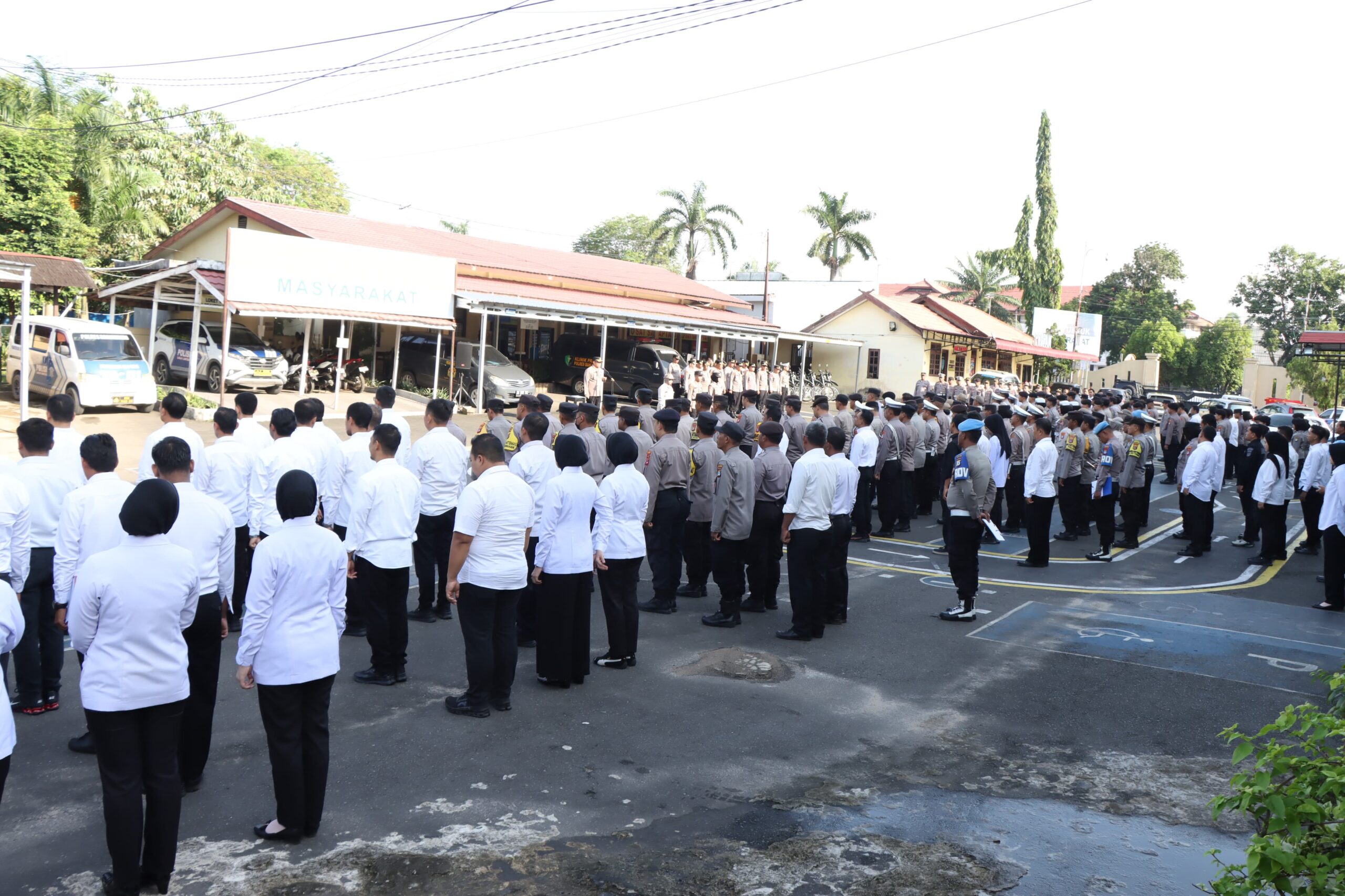 Banjarbaru – Polres Banjarbaru Polda Kalimantan Selatan melaksanakan apel pagi jam pimpinan pertama usai Perayaan Hari Raya Idul Fitri 1447 H pada Senin (30/03).