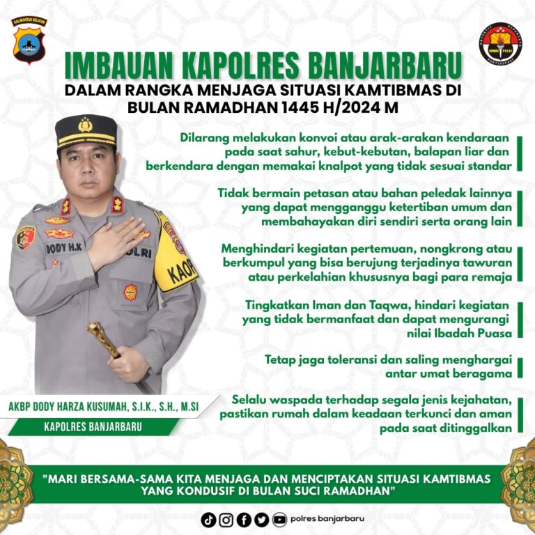SharingBanjarbaru – Menyambut Bulan suci Ramadhan 1445 Hijriah, Kapolres Banjarbaru AKBP Dody Harza Kusumah, S.I.K.,...