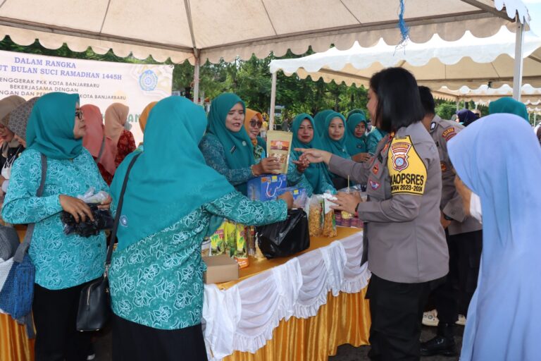 SharingBanjarbaru – Wakapolres Banjarbaru, Kompol Winda Adhiningrum, S.H., S.I.K., M.M., menghadiri Pasar Murah Bersubsidi...