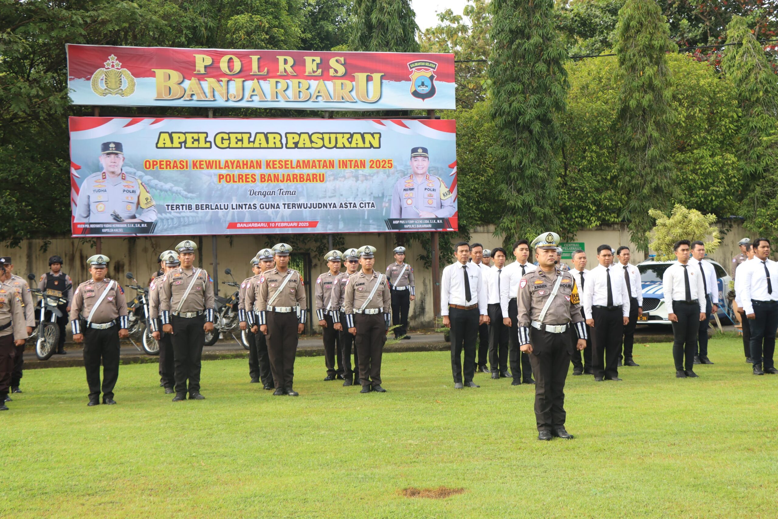 Usai giat upacara apel Keselamatan Intan 2025, Kapolres Banjarbaru AKBP Pius X Aceng Loda Mengatakan Operasi Keselamatan Intan 2025 diadakan, untuk Untuk menangani dinamika permasalahan di bidang Lalulintas.