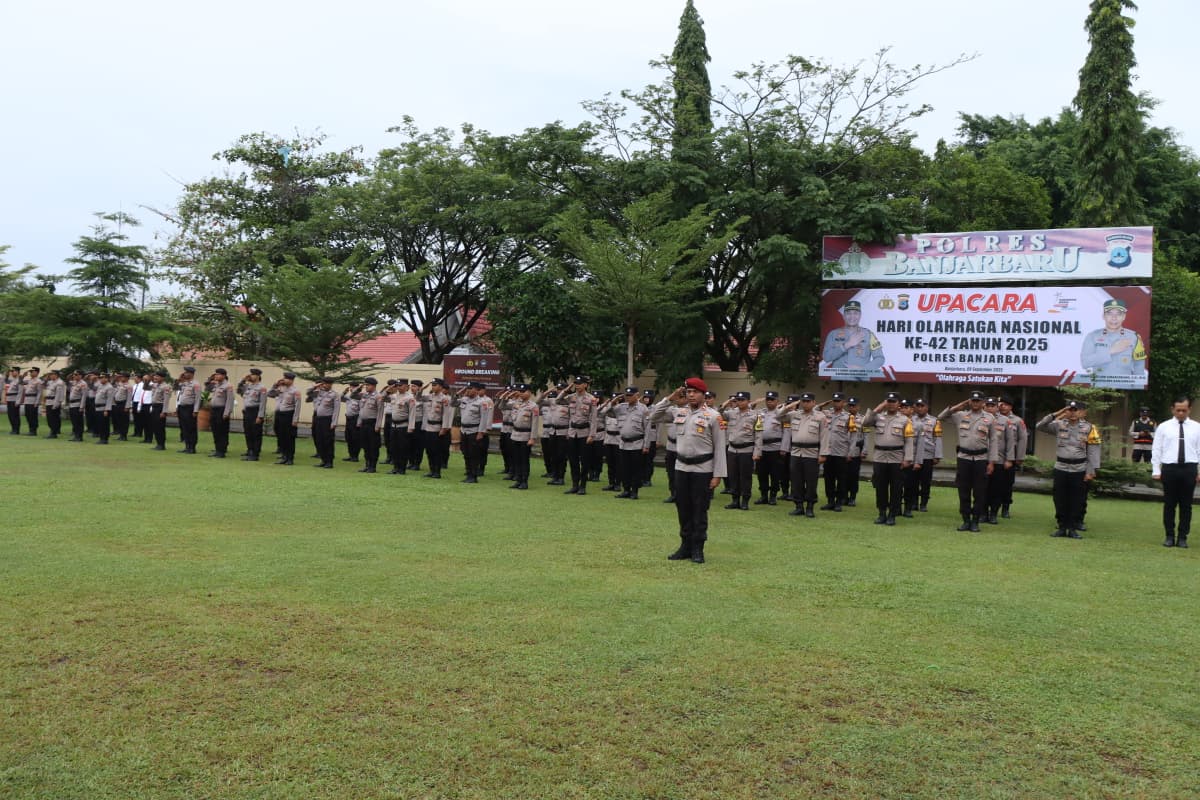 BANJARBARU – Polres Banjar melaksanakan Upacara Peringatan Hari Olahraga Nasional (Haornas) ke-42 Tahun 2025 yang digelar di Halaman Apel Mapolres Banjarbaru, Selasa (09/09/2025) pagi.