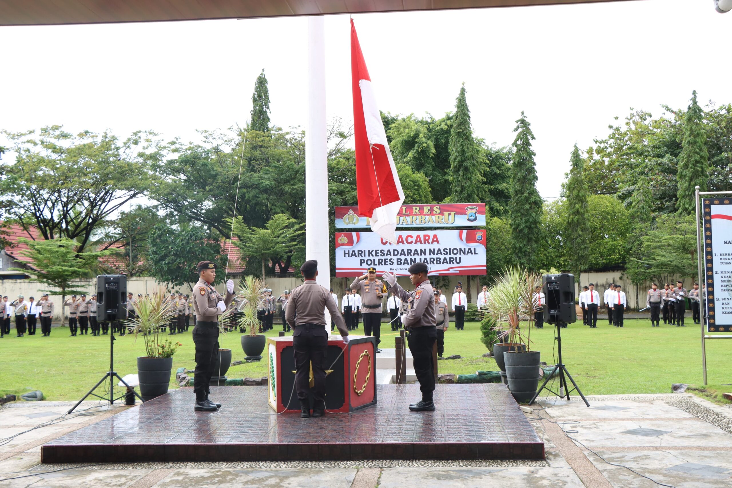 Upacara ini dipimpin langsung oleh AKBP Pius X Febry Aceng Loda, S.I.K., M.H dan bertindak sebagai pelaksana dari Sat Intelkam dan Sat Binmas Polres Banjarbaru yang diikuti oleh para PJU, para Kapolsek jajaran, para Perwira, Bintara serta ASN dilingkungan Polres Banjarbaru.
