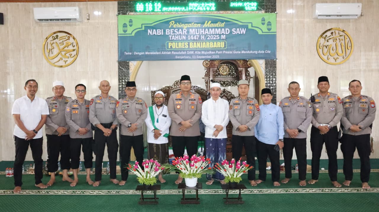 BANJARBARU – Polres Banjarbaru menggelar peringatan Maulid Nabi Besar Muhammad SAW 1447 Hijriah/2025 Masehi di Masjid Nururrasulli, Rabu (3/9/2025).