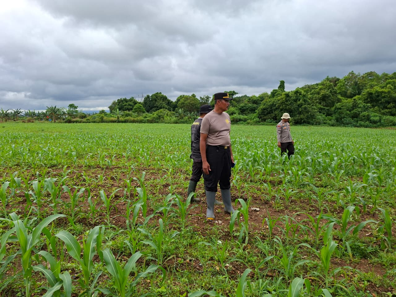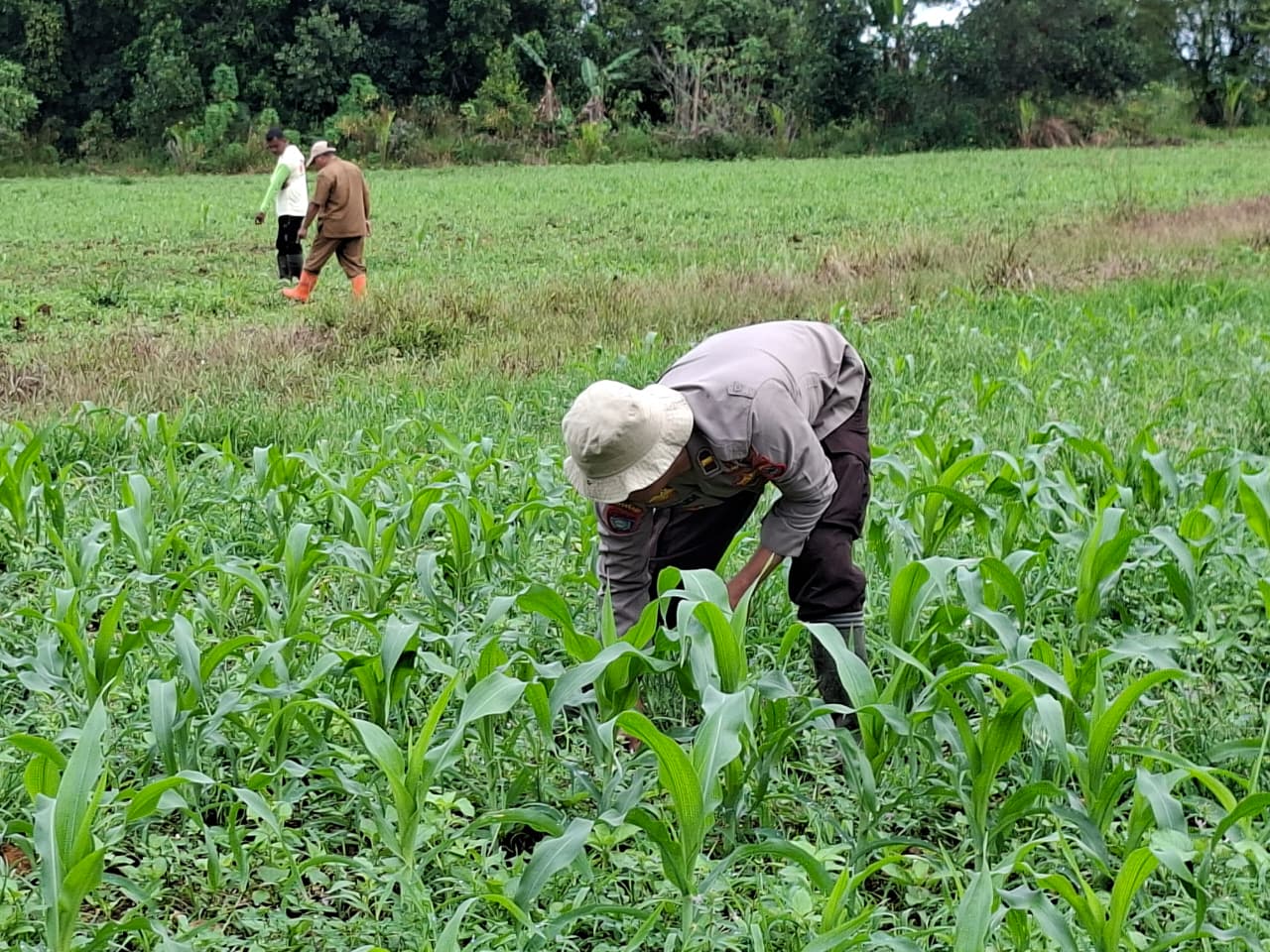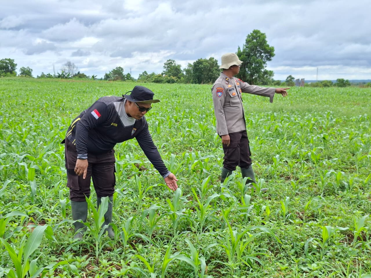 Dalam pelaksanaannya, petugas melakukan pengecekan kondisi lahan, pertumbuhan tanaman jagung pipil, serta memastikan tidak adanya kendala yang berarti dalam proses penanaman. Selain itu, personel juga memberikan motivasi dan imbauan kepada Bapak Nurkhalim agar terus semangat dalam mengelola lahan pertaniannya.