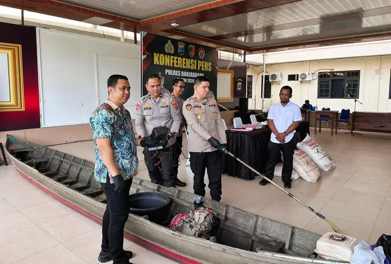 “Aktivitas pencarian ikan dengan alat setrum atau listrik, dalam undang-undang itu dilarang. Kemudian kami amankan pelaku, sarana air, sarana setrum berikut alat dan hasil (tangkapan) ikannya,” kata Kapolsek Beruntung Baru, Ipda Deden Aprianto Lesmana dalam jumpa pers di Aula Joglo Mapolres Banjarbaru, Kamis (9/4/2026).