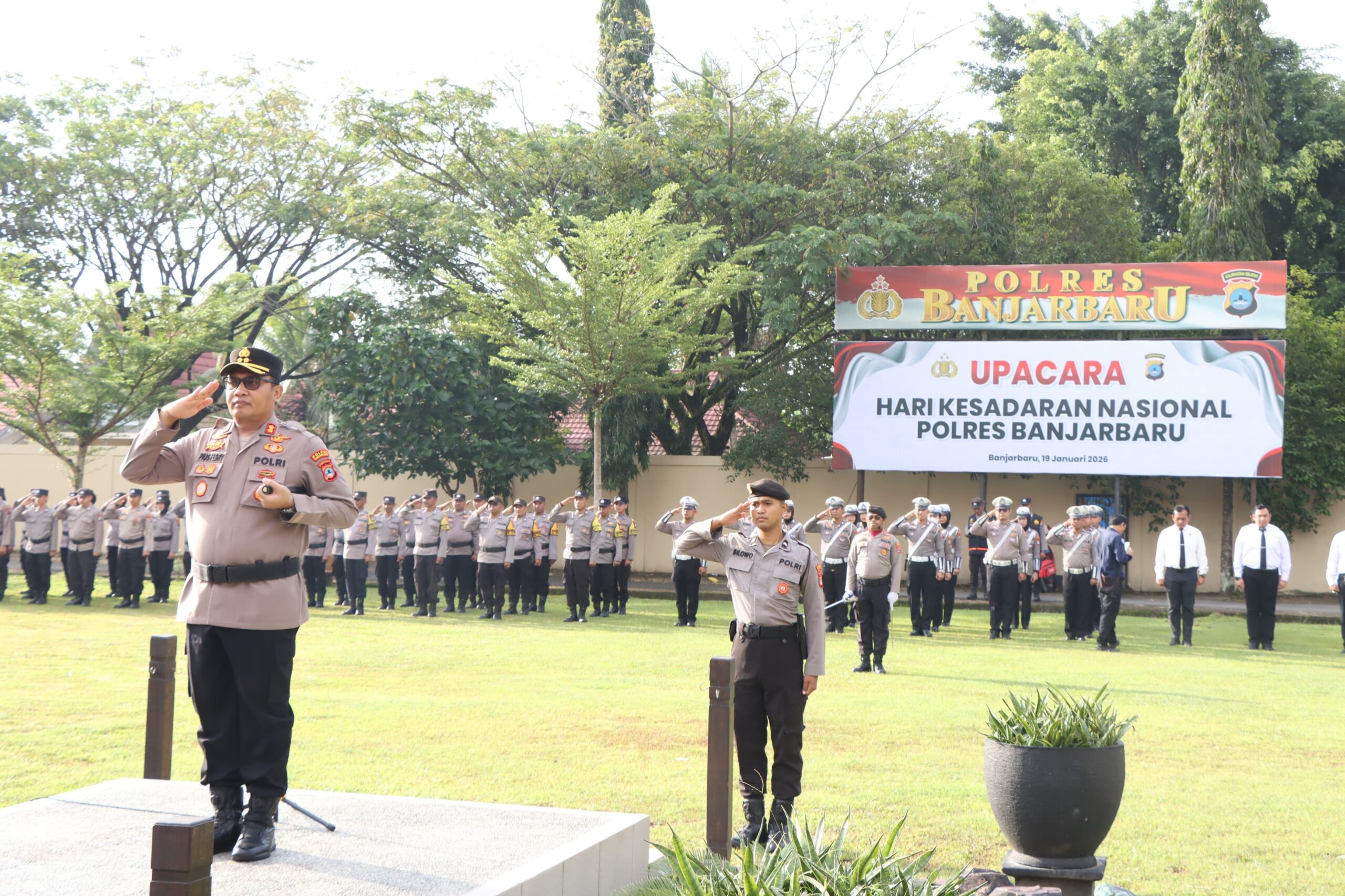 Banjarbaru, 19 Januari 2026 – Polres Banjarbaru menggelar Upacara Hari Kesadaran Nasional yang diikuti oleh pejabat utama, perwira, serta seluruh personel Polres Banjarbaru. Kegiatan upacara berlangsung dengan khidmat sebagai bentuk penghormatan terhadap nilai-nilai pengabdian dan disiplin aparatur negara.
